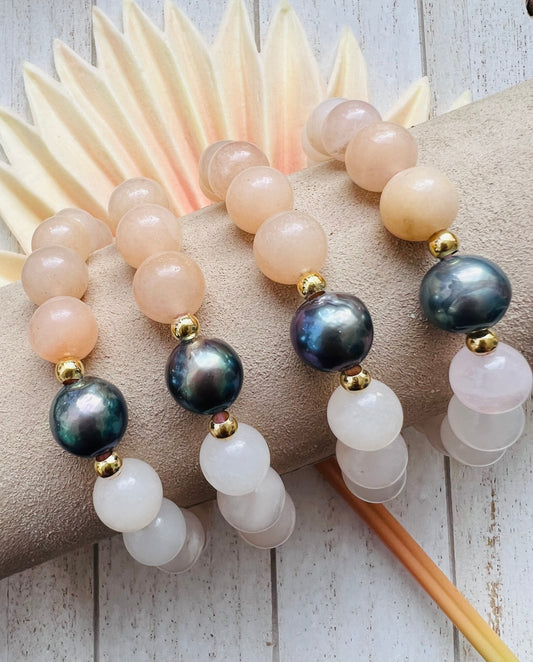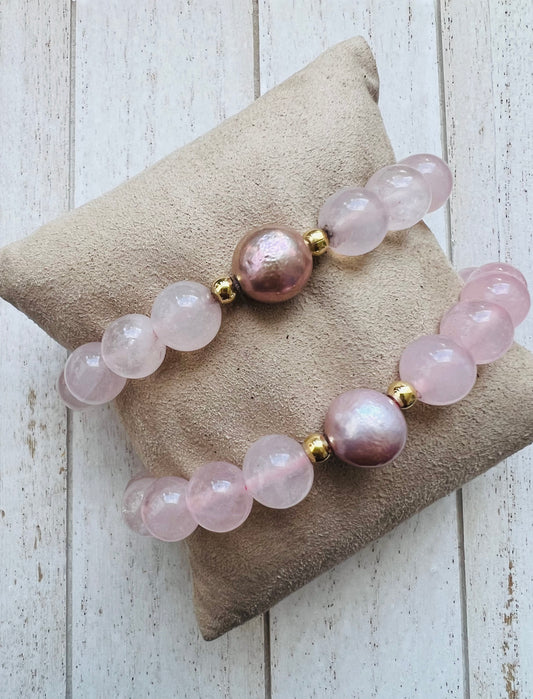 ROSE QUARTZ W/ EDISON PEARL stretch bracelet
